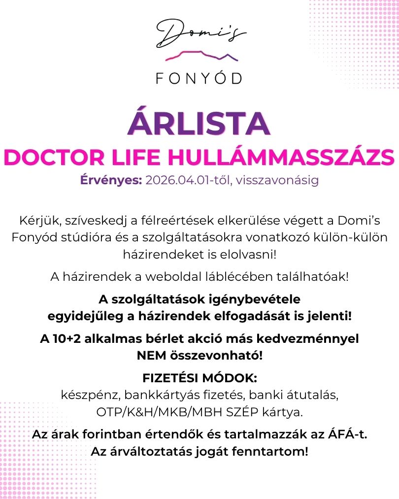 - A hullámmasszázs kezelések között minimum 1 nap kihagyás szükséges.