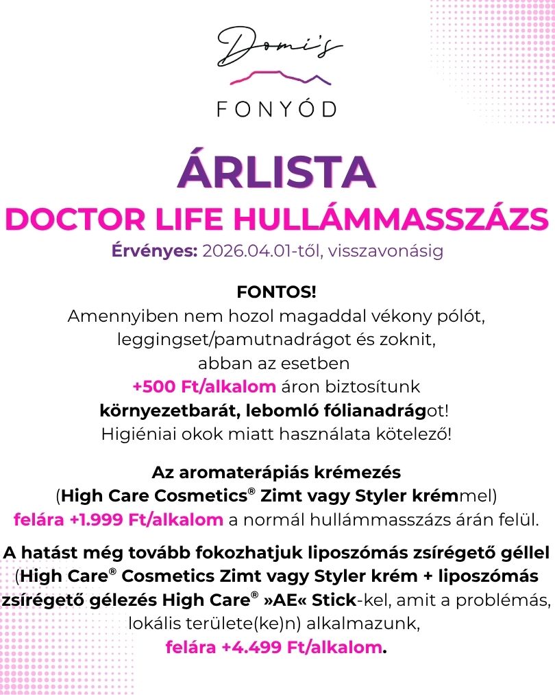 Az aromaterápiás krémezés (High Care Cosmetics® Zimt vagy Styler krémmel) felára +1.999 Ft/alkalom a normál hullámmasszázs árán felül.