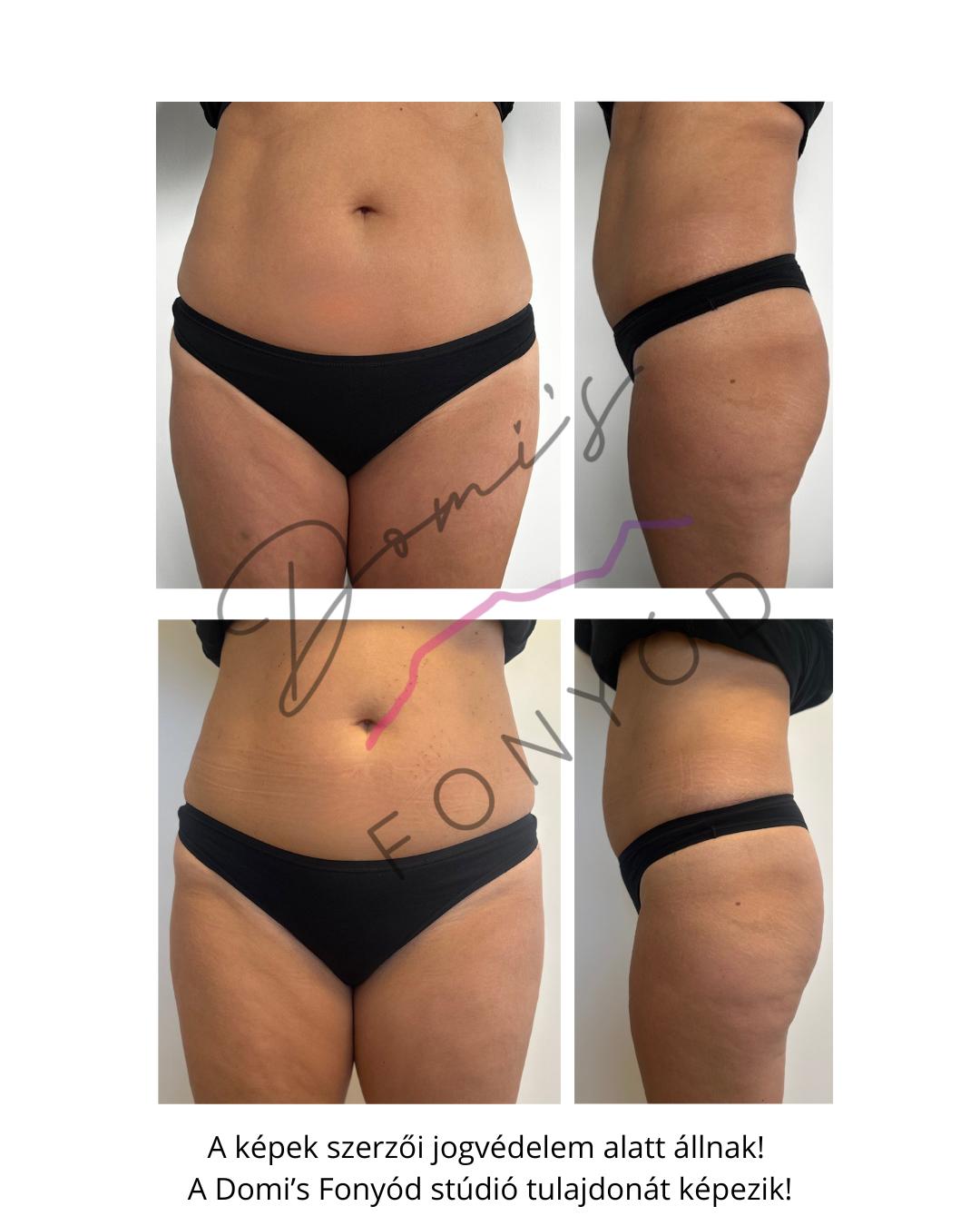 • Független klinikai vizsgálatok kimutatták, hogy egyes esetekben az 5D lipolézer összehasonlítható a zsírleszívás eredményével.