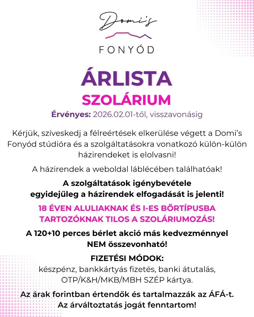 MIÉRT A DOMI'S FONYÓD SZOLÁRIUM STÚDIÓT VÁLASZD?
